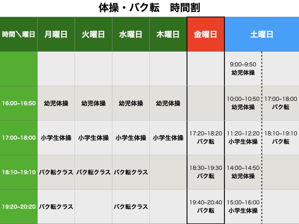 月謝 | ダンス:6,200円 幼児体操 体操教室:7,500円 バク転:8,000円 |